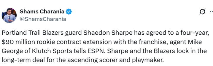 夏普被认为是开拓者队寄望重返西部强队之列的核心所在。开拓者队拥有年轻的核心阵容,包括24岁的阿夫迪亚、25岁的卡马拉和21岁的克林根。他们希望夏普和21岁的控球后卫斯库特・亨德森(因腿筋伤势将缺席赛季初期的比赛)能在本赛季有出色表现,推动开拓者队自2021年以来首次打入季后赛。