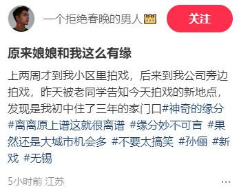 因为早在一周之前,网友就不断在无锡遇到孙俪拍戏。