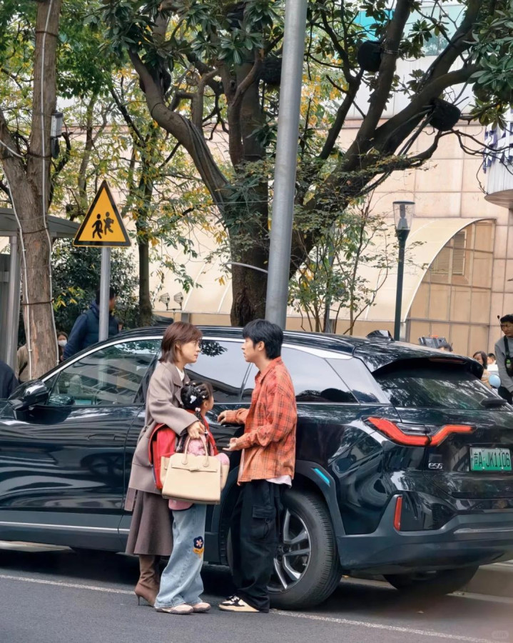 路透中孙俪经常牵着一位小朋友,而且还去幼儿园接她放学。