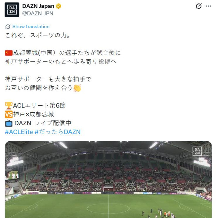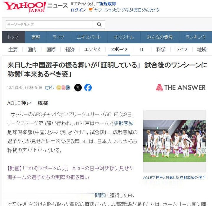 日本媒体直言,这就是体育的力量,成都蓉城球员也展现出了绅士风度,双方球队和球迷赛后也有温暖互动,引发了日本球迷的一片赞扬。还有不少日本球迷表示,太出色了!无论是成都蓉城的球员还是球迷,都非常棒!比赛拼尽全力,赛后彼此尊重,这是最重要的。